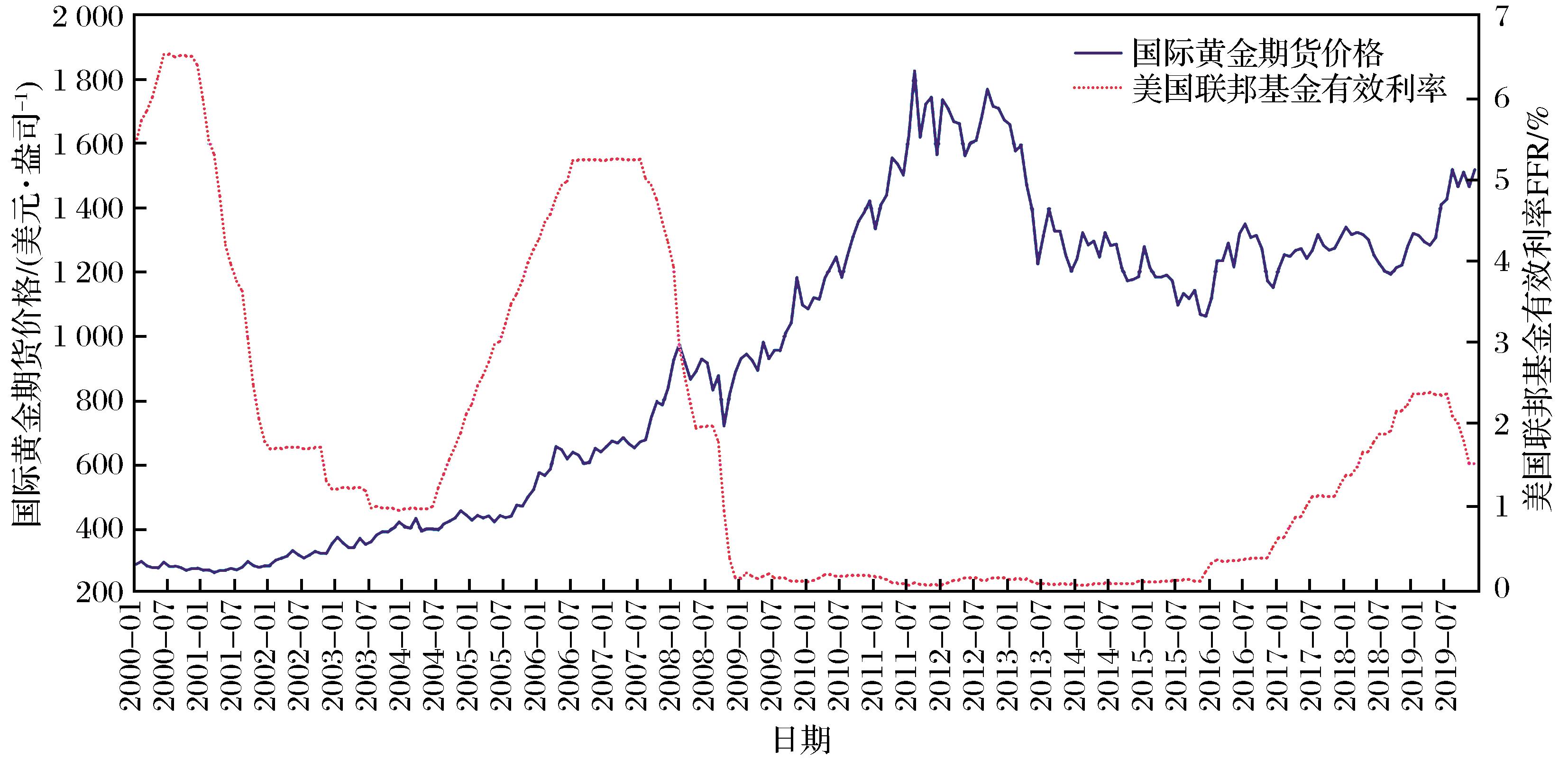 | 图3 2000—2019年国际黄金期货价格与利率水平 |