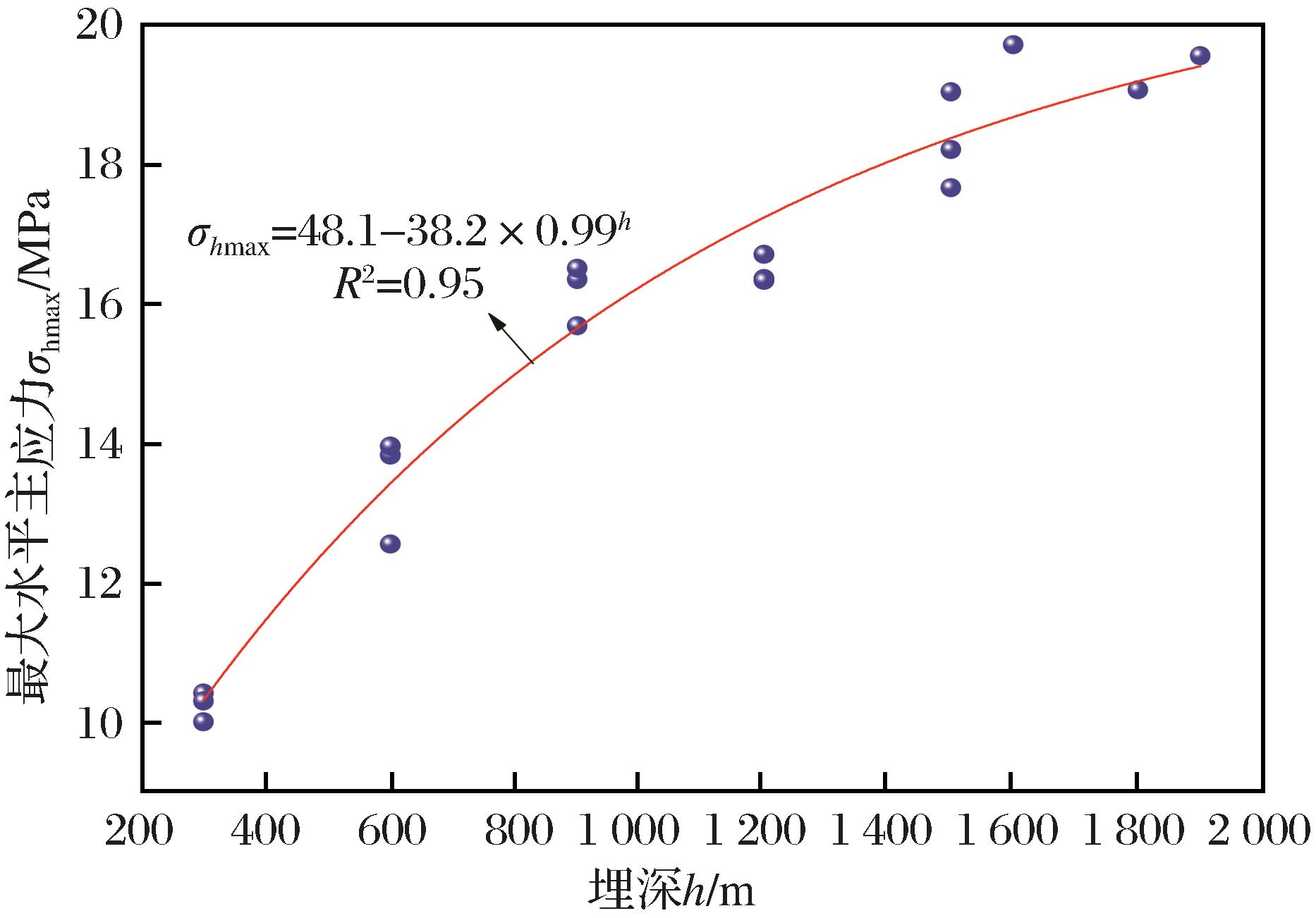 | Fig.6 Relationship between maximum horizontal principal stress and buried depth |