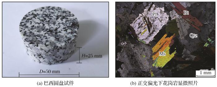鉴于以上原因,同时考虑到工程岩体经常受到爆破作业、机械化施工和地震等冲击荷载的影响,并且岩石材料常因受拉伸应力的作用而破坏(Wang et al.,2009),本文对经受温度冲击后的岩石材料的动态拉伸性能开展研究。采用不同的加热温度和降温方式对花岗岩试件进行温度冲击处理,使用分离式霍普金森压杆系统对花岗岩试件开展动态力学试验,得到了不同的温度冲击对花岗岩动态拉伸强度的影响规律。使用高速摄影仪记录冲击试验中裂纹的扩展形式,结合破坏后的碎片形态,评估不同温度冲击对花岗岩造成的损伤程度。利用扫描电镜观测温度冲击对花岗岩切片微观形貌,讨论了花岗岩内部发生温度冲击的条件。