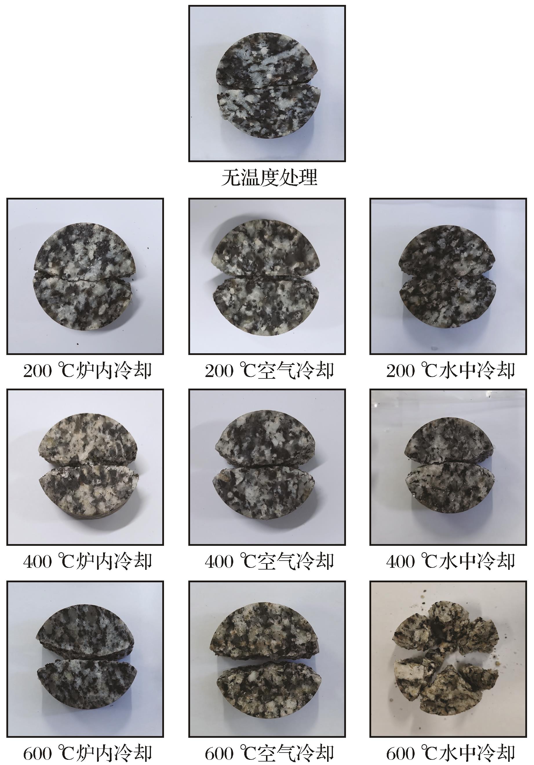 | 图9 不同温度冲击处理的花岗岩试件在动态冲击试验后的碎片形态 |