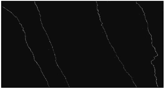 经过边缘检测初步提取出的坡面顶底线还存在以下3个需要后续处理的问题:一是线条宽度不是一个像素宽,即提取的坡面顶底线宽度过大;二是梯度运算的结果是孤立的边缘像素点,没有形成完整的轮廓线;三是提取的数据点密度过大。