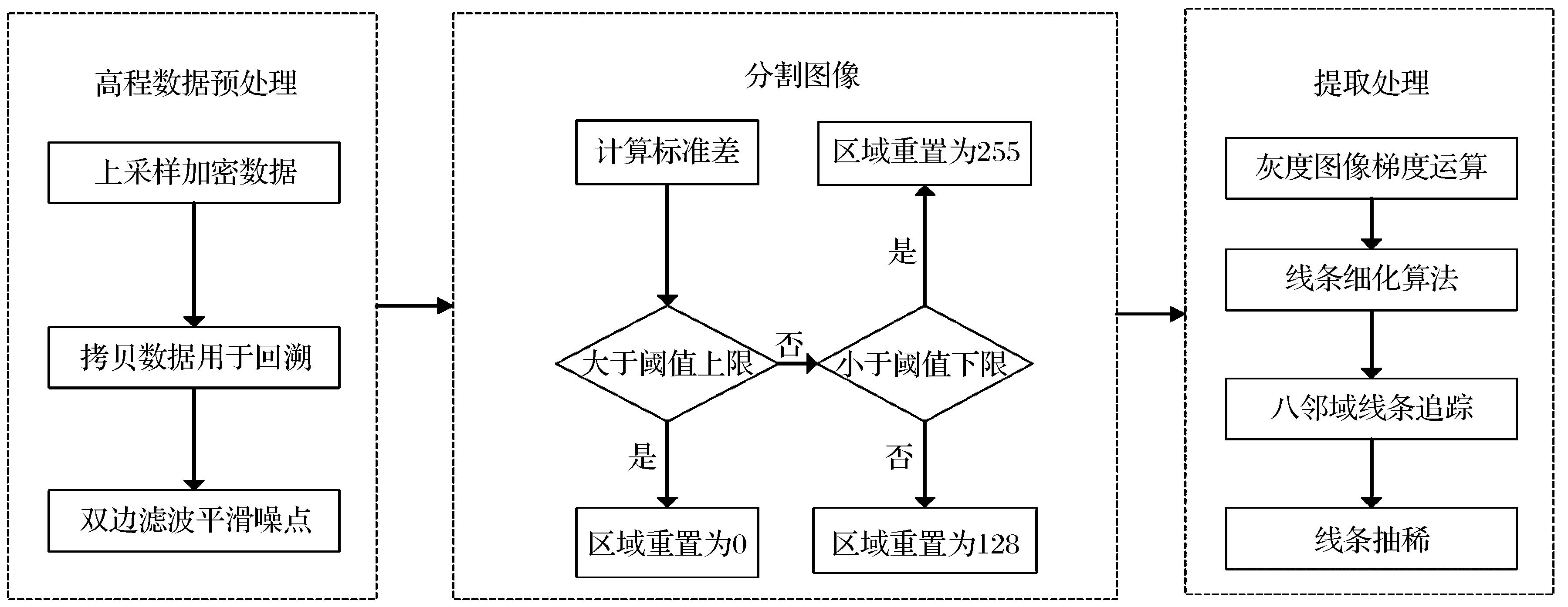 | 图1 基于DEM的坡面顶底线自动提取处理流程图 |