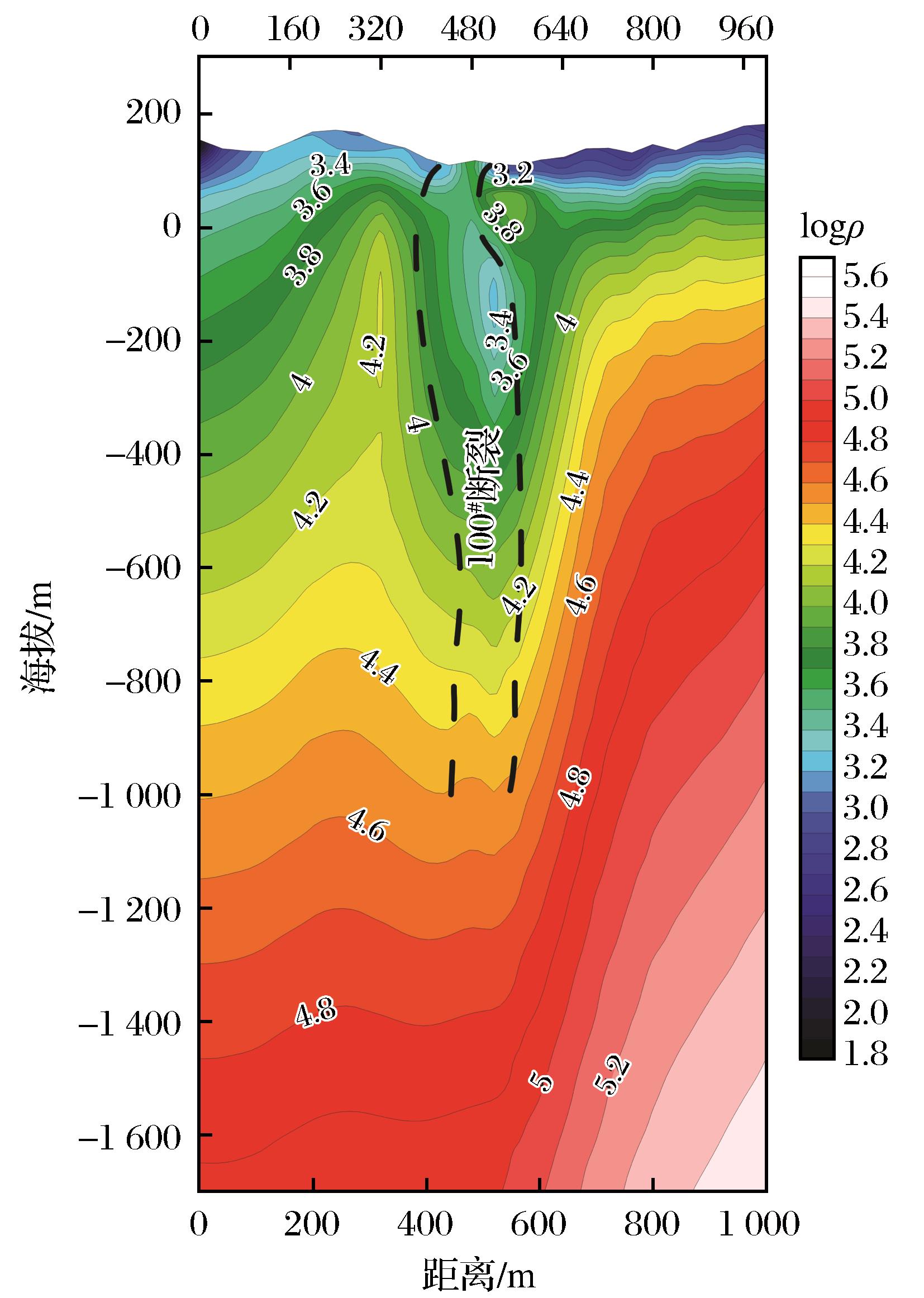 | Fig.4 2D inversion section of EH4 along line No.100 in the Wulong gold deposit |