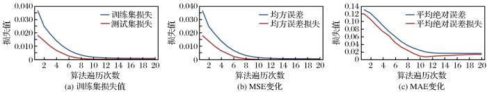 训练样本与测试样本随Epochs的损失、MSE和MAE变化曲线