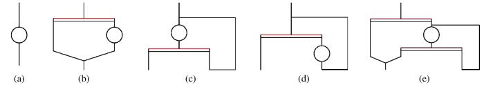 (a)一段开路单元;(b)一段带预先分级单元;(c)一段带检查分级单元;(d)一段带预先和检查分级单元;(e)一段带预先分级和检查分级单元
