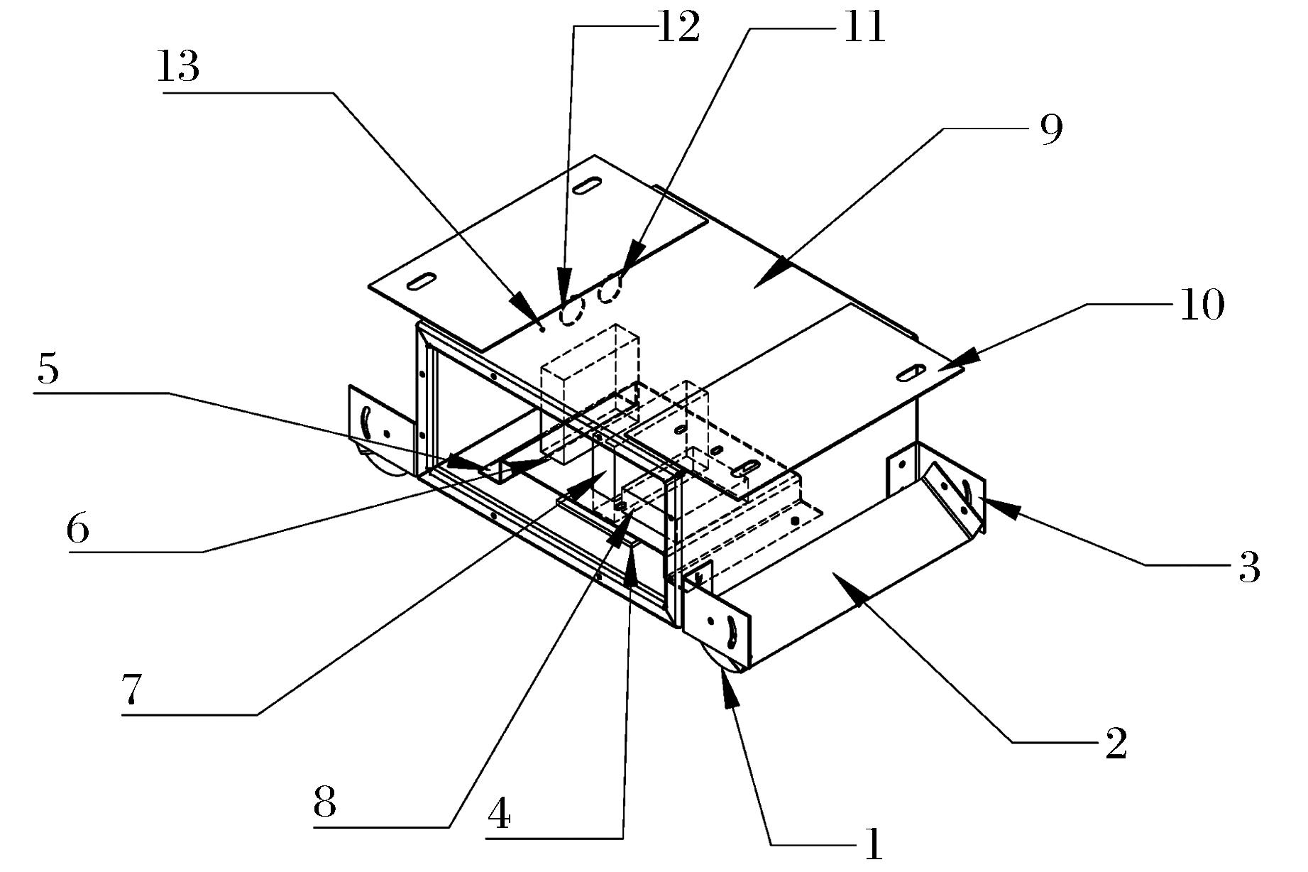 | 图2 相机集成装置 1-补偿灯;2-灯架;3-灯板;4-透明板;5-支撑板;6-开关电源;7-深度相机;8-光纤收发器;9-箱体;10-支架;11-电源接口;12-网线接口;13-光纤转换接口 |