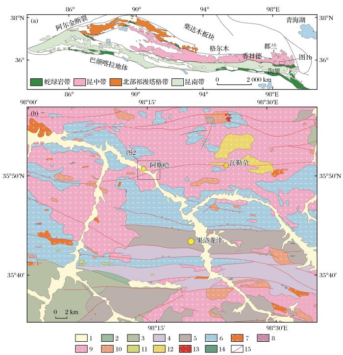 ... 阿斯哈金矿床位于东昆仑成矿带昆中地块最东端的沟里金矿区.昆仑造山带由柴达木地块与羌塘地体或巴颜喀拉地体碰撞形成,被阿尔金断裂分为东昆仑造山带(E-KOB)和西昆仑造山带(W-KOB)(姜春发等,1992;Dong et al.,2018).E-KOB是中央造山系(CCOS)西段的一部分,被誉为“金腰带”,由昆仑洋(古特提斯洋的一个分支)的闭合而形成.E-KOB从北到南依次划分为3个主要的蛇绿混杂岩带,即祁漫塔格—香日德蛇绿混杂岩带(QXM)、阿奇科库勒湖—昆中蛇绿混杂岩带(AKM)和木孜塔格—布青山—阿尼玛卿蛇绿混杂岩带(MBAM).据此,E-KOB被划分为4个主要构造单元,分别是北部祁漫塔格带、昆中带、昆南带和巴颜喀拉地体[Dong et al.,2018,图1(a)].形成柴达木地块南段的北部祁漫塔格带(Chen et al.,2007),由古元古代高级变质基底和上覆不连续的奥陶—志留系、中—上泥盆统、石炭系—下二叠统、上三叠统和侏罗系火山沉积序列组成.昆中带出露大量的古元古代金水口群,包括副片麻岩、混合岩、片岩、角闪岩和大理岩等(姜春发等,1992).昆南带主要由古生代—三叠纪沉积组合不连续逆冲推覆体及包含少量前寒武纪变质岩的火山组合不连续逆冲推覆体和早古生代深成岩体组成.巴颜喀拉地体沿南部边界断裂被推覆到木孜塔格—布青山—阿尼玛卿蛇绿混杂岩带和昆南带上,广泛分布巴颜喀拉群厚层状三叠系浊积岩,存在多期逆冲褶皱叠加. ...
