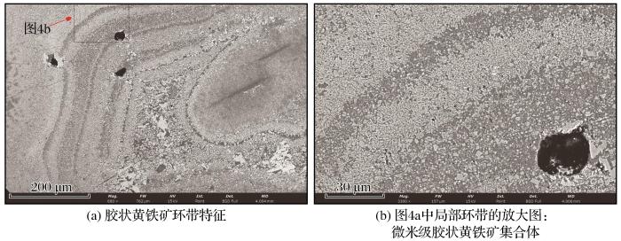 ... 本文首次在东昆仑阿斯哈金矿区发现了胶状黄铁矿.胶状黄铁矿为细小颗粒的集合体,以复杂曲面的平行条带或不规则同心环状条带为特征,条带之间呈渐变过渡关系,条带上常具有凝胶的收缩纹.目前关于胶状黄铁矿的成因主要有2种代表性观点:一是海相热水沉积成因(徐亮等,2019;任云生等,2006);二是岩浆热液成因(任云生等,2006).阿斯哈金矿的胶状黄铁矿微观结构类似于铜陵矿集区热液成因的胶状黄铁矿,该黄铁矿为低温热液产物,是物理化学条件骤变引起含矿热液过饱和结晶形成的(任云生等,2006).前人关于胶状黄铁矿的研究仅局限于矿物学的研究,即微区矿物组成、微形貌和微结构等特征研究(徐亮等,2019;谢巧勤等,2014),缺少反演黄铁矿沉淀时的物理化学条件变化以及物质来源特征的相关工作,进而制约了对胶状黄铁矿的成因和成矿作用过程的理解.黄铁矿的原位微量元素和面扫分析可以直观地呈现其在沉淀过程中微量元素迁移变化特征,从而反演当时的物理化学条件变化,而黄铁矿的硫同位素组成可为其物质来源提供有力的证据. ...