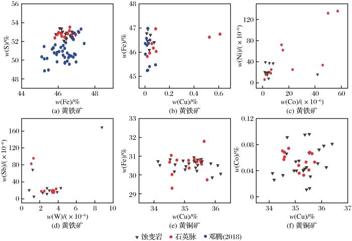 表1 石英脉中黄铁矿和黄铜矿的电子探针分析结果
