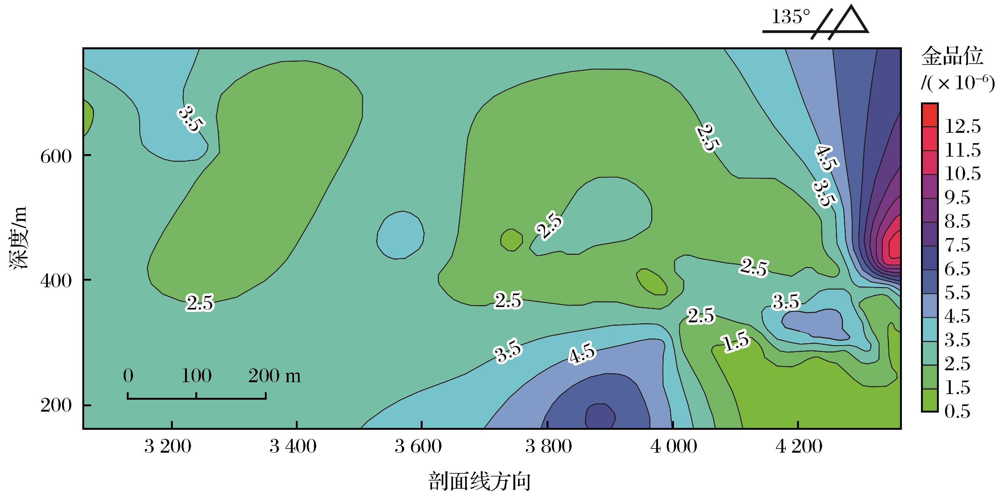 | 图10 Ⅰ-5号矿体品位分布纵投影图 |