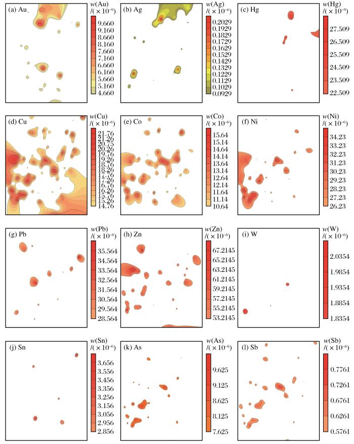 利用SPSS软件对12种元素进行相关性分析(表3),取对数进行Pearson相关性检验(Adeto-yinbo et al.,2011;Vural,2020),再进行Z分数标准化后发现:Au与Ag,As、Sb与Cu、Co、Ni相关性系数均大于0.6,表明Au与Ag,Cu-Co-Ni元素相关性大,元素之间的联系也较为密切,与区域元素组合关系较一致。