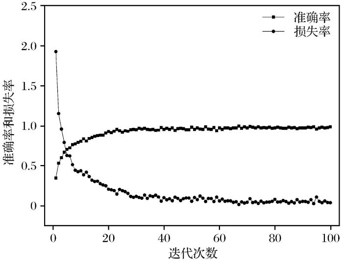 为了更好地说明本文方法的分类准确率和收敛性能,计算了测试集每一步的准确率和损失率,结果如图11所示。