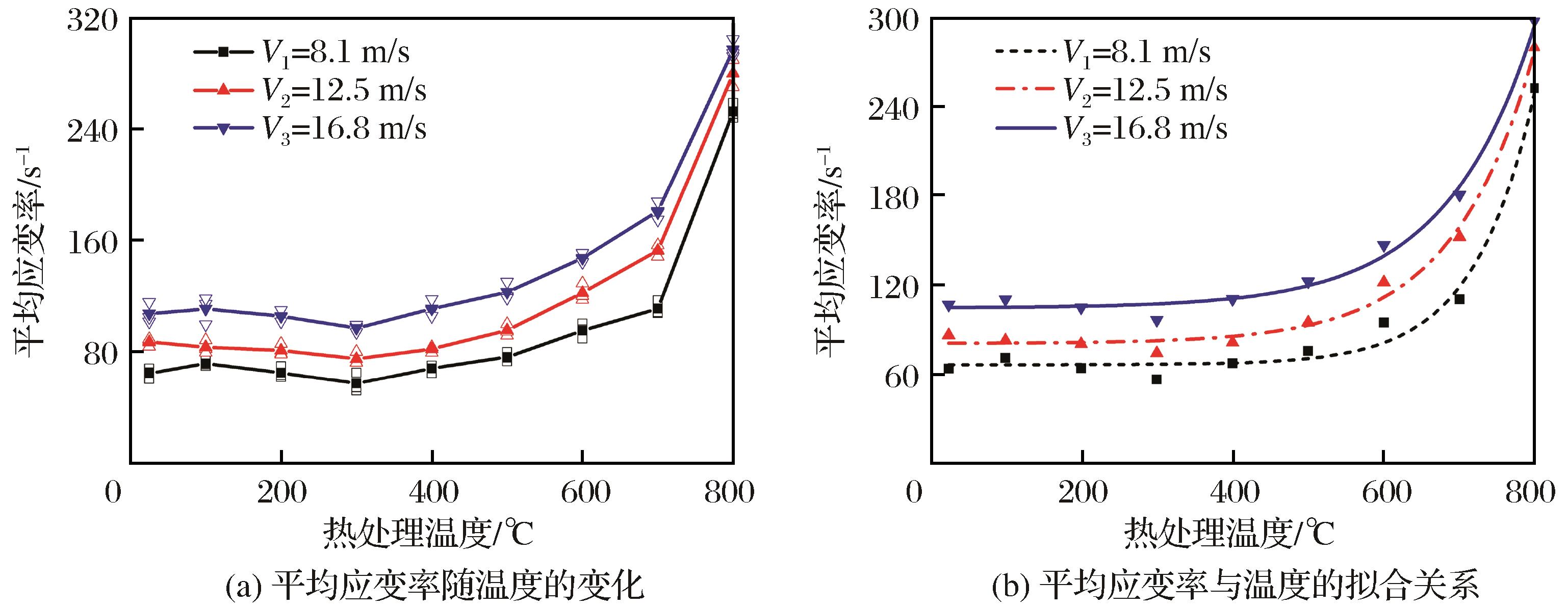 | 图7 不同弹速下平均应变率与温度的关系 |