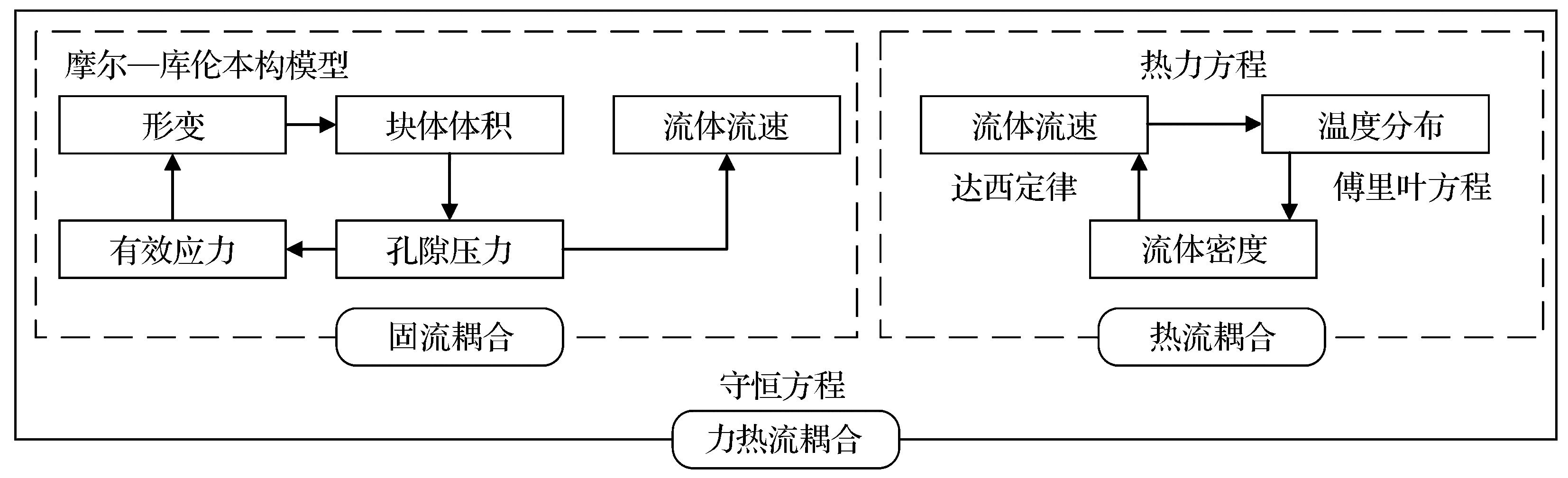 | Fig.3 Principle of FLAC3D stress deformation-heat transfer-fluid flow coupling model |