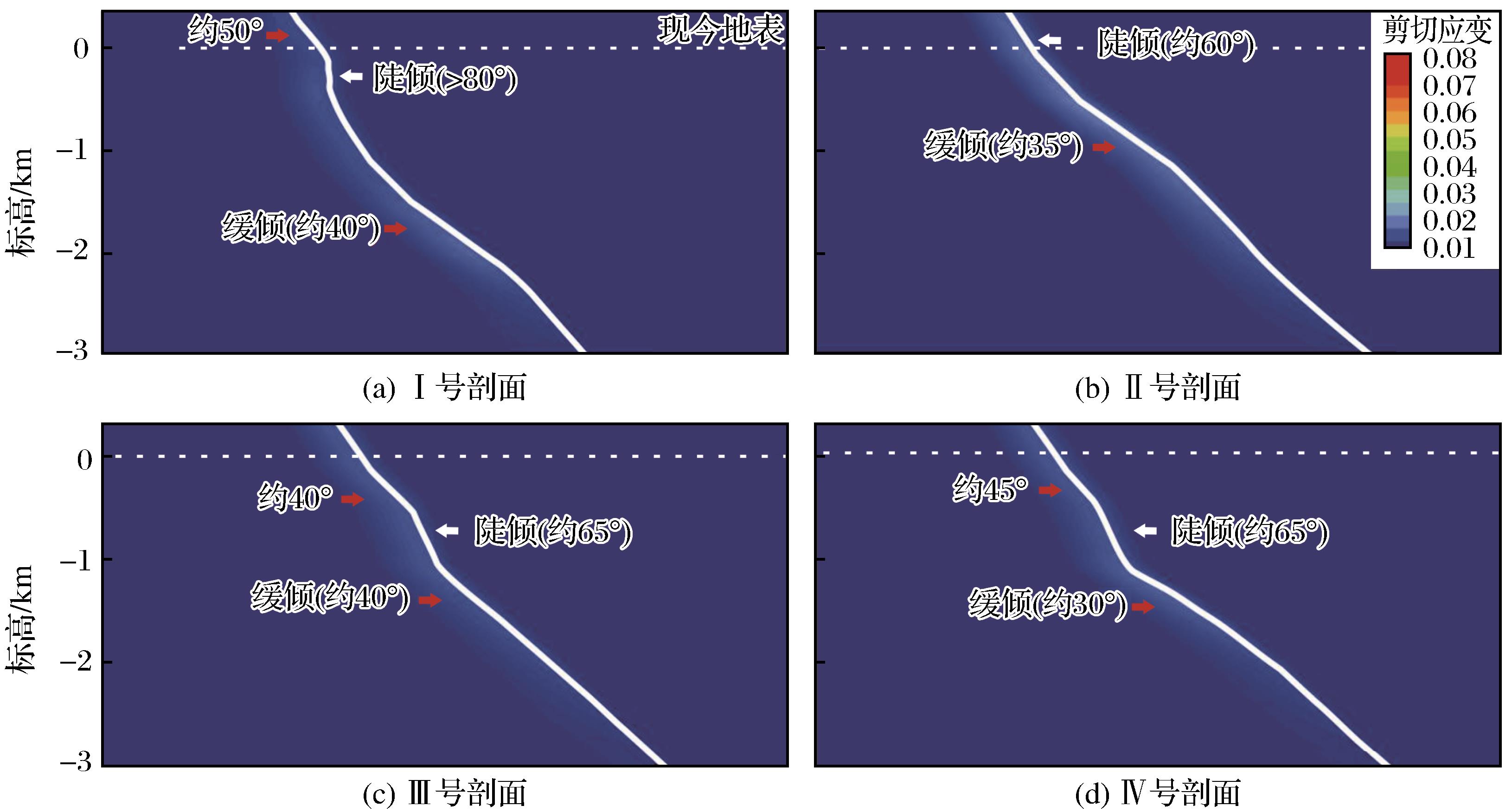 | 图7 体积压缩量为0.1%时不同典型剖面剪切应变图 |
