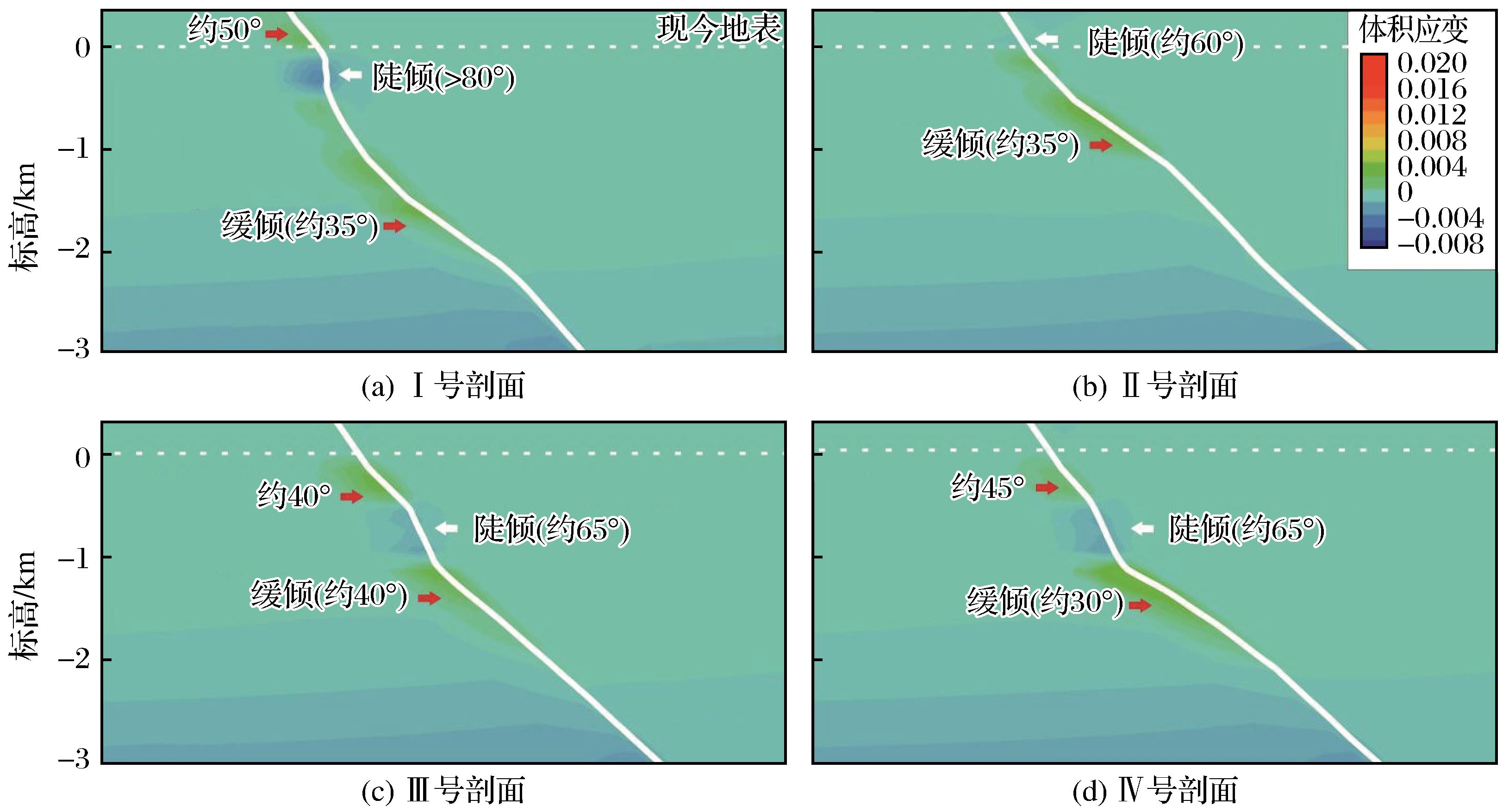 | 图9 体积压缩量为0.1%时不同典型剖面体积应变图 |