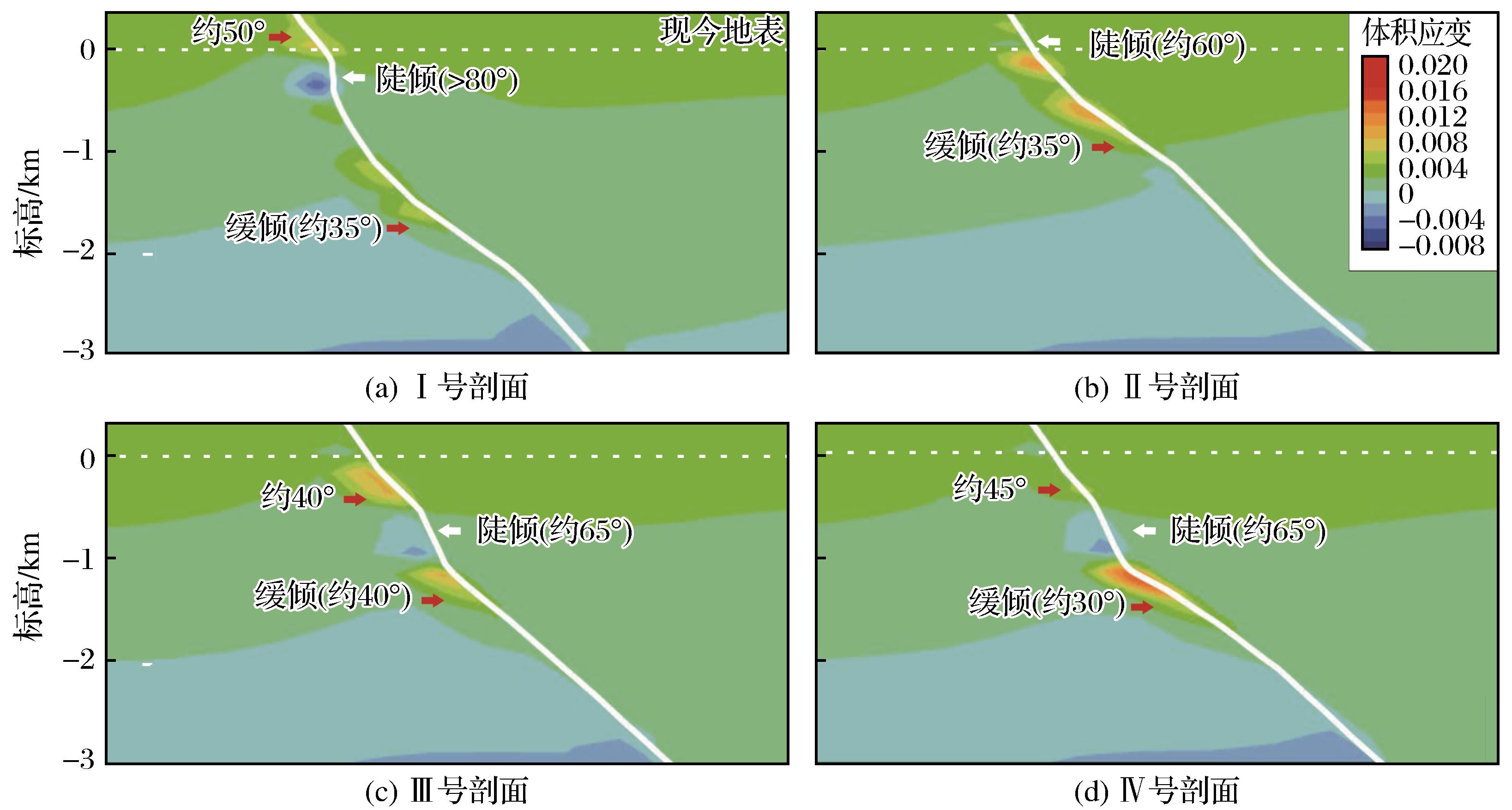 | 图10 体积压缩量为2%时不同典型剖面体积应变图 |