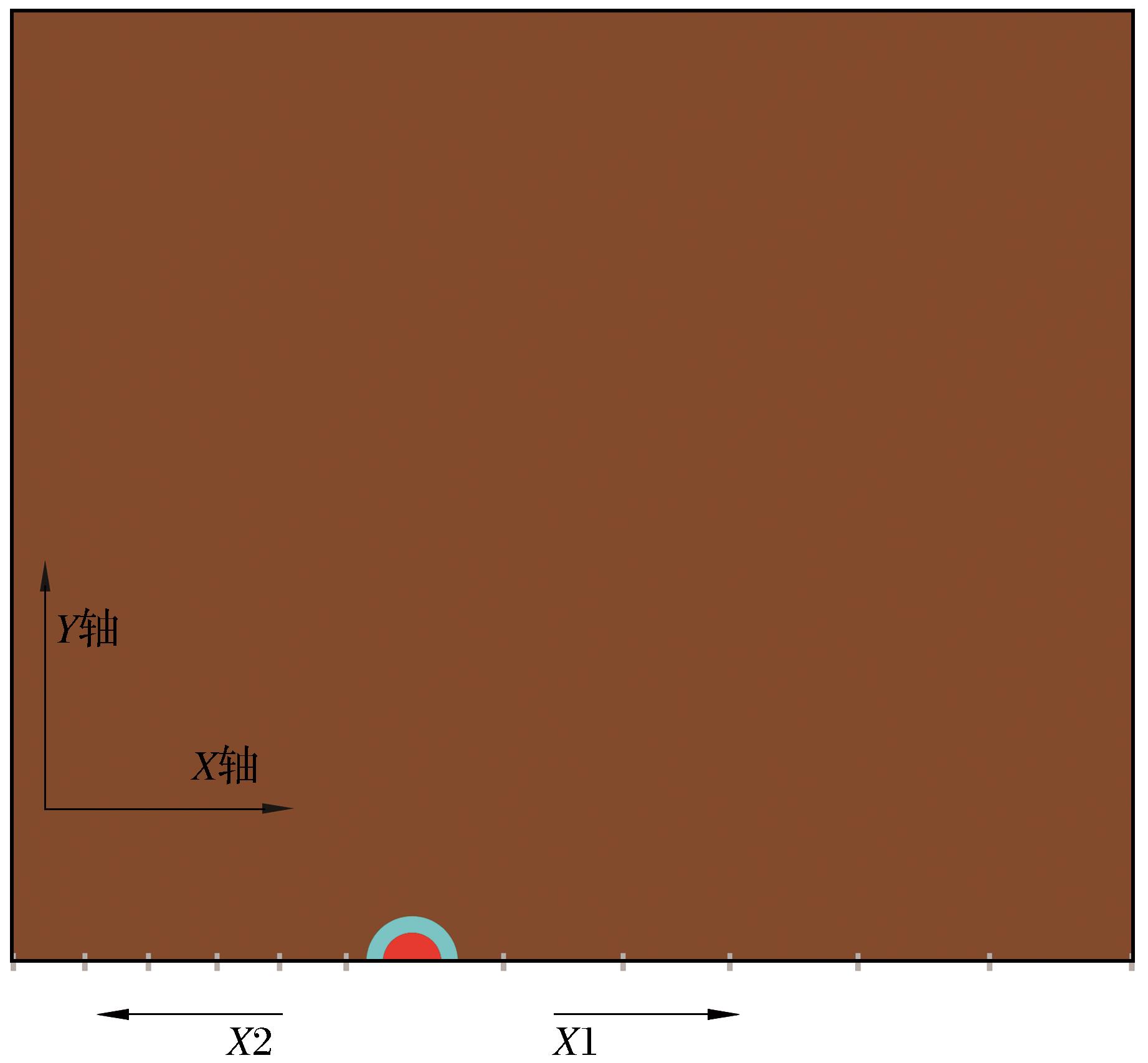| Fig.7 Schematic of “slice” of double hole blasting(taking the hole spacing of 0.6 m as an example) |
