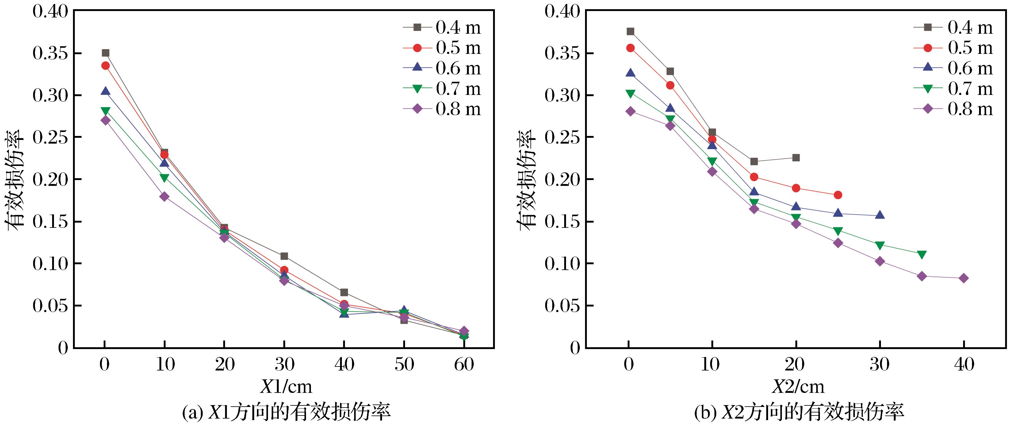 | 图8 各方案在X1和X2方向的径向有效损伤率 |