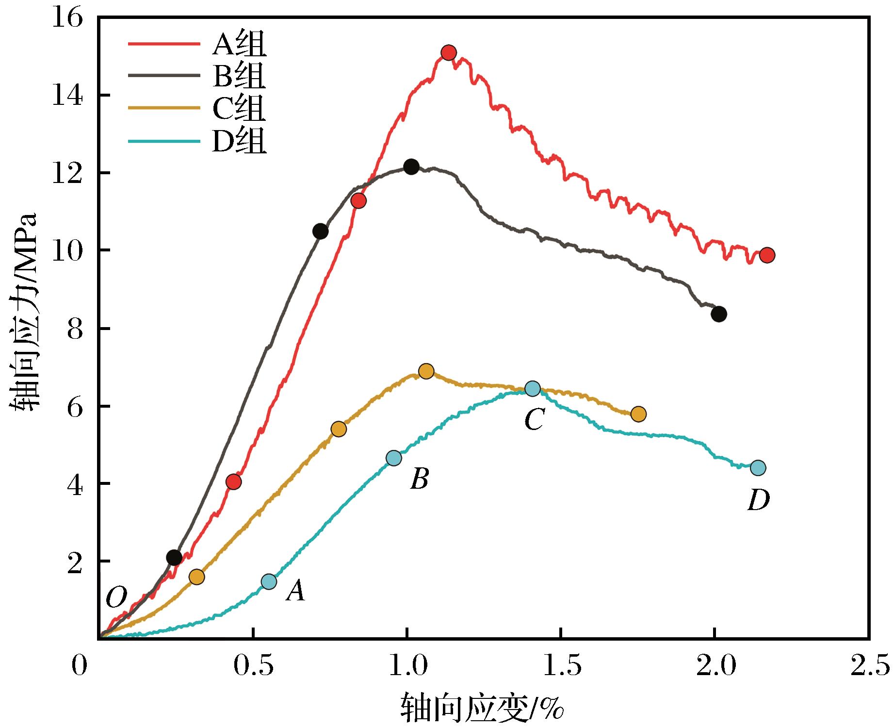 | 图4 不同尺寸充填体应力—应变曲线 |
