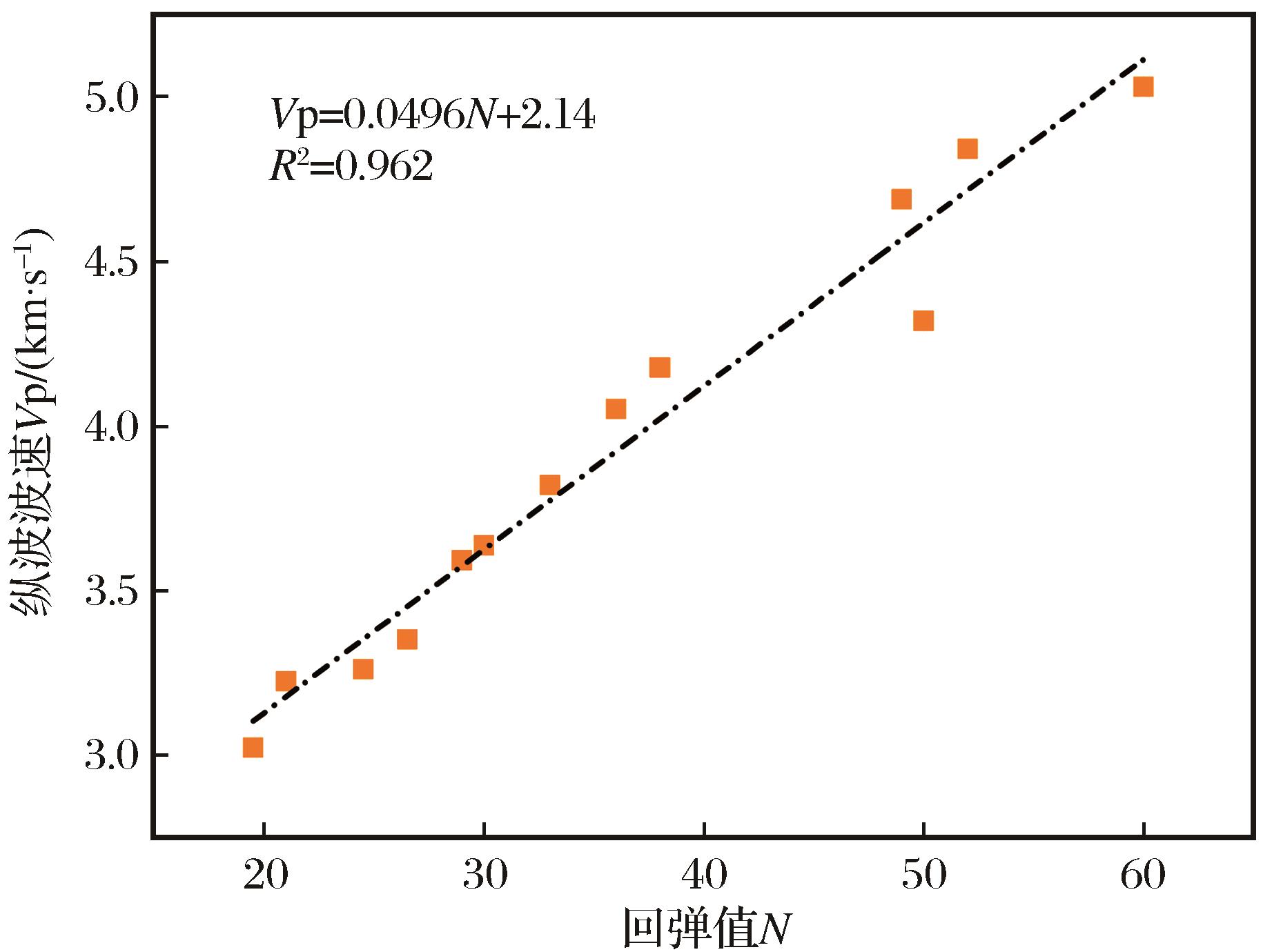 | 图6 岩石纵波波速与回弹值关系曲线 |