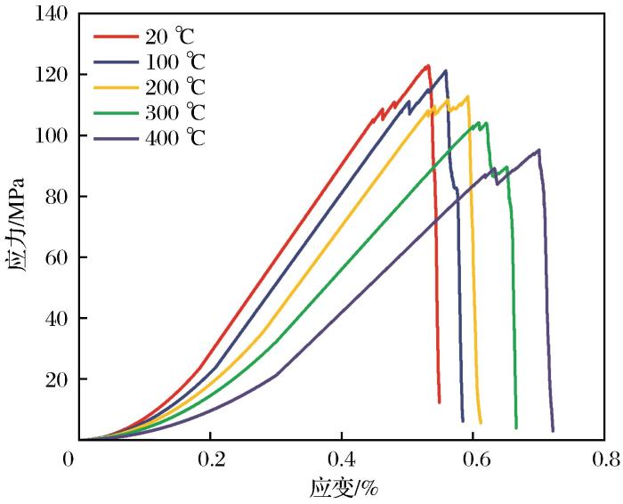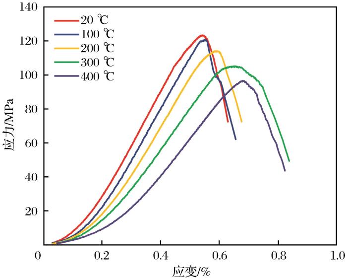 | 温度/℃ | 峰值强度/MPa | 峰值应变/% | 弹性模量/GPa |