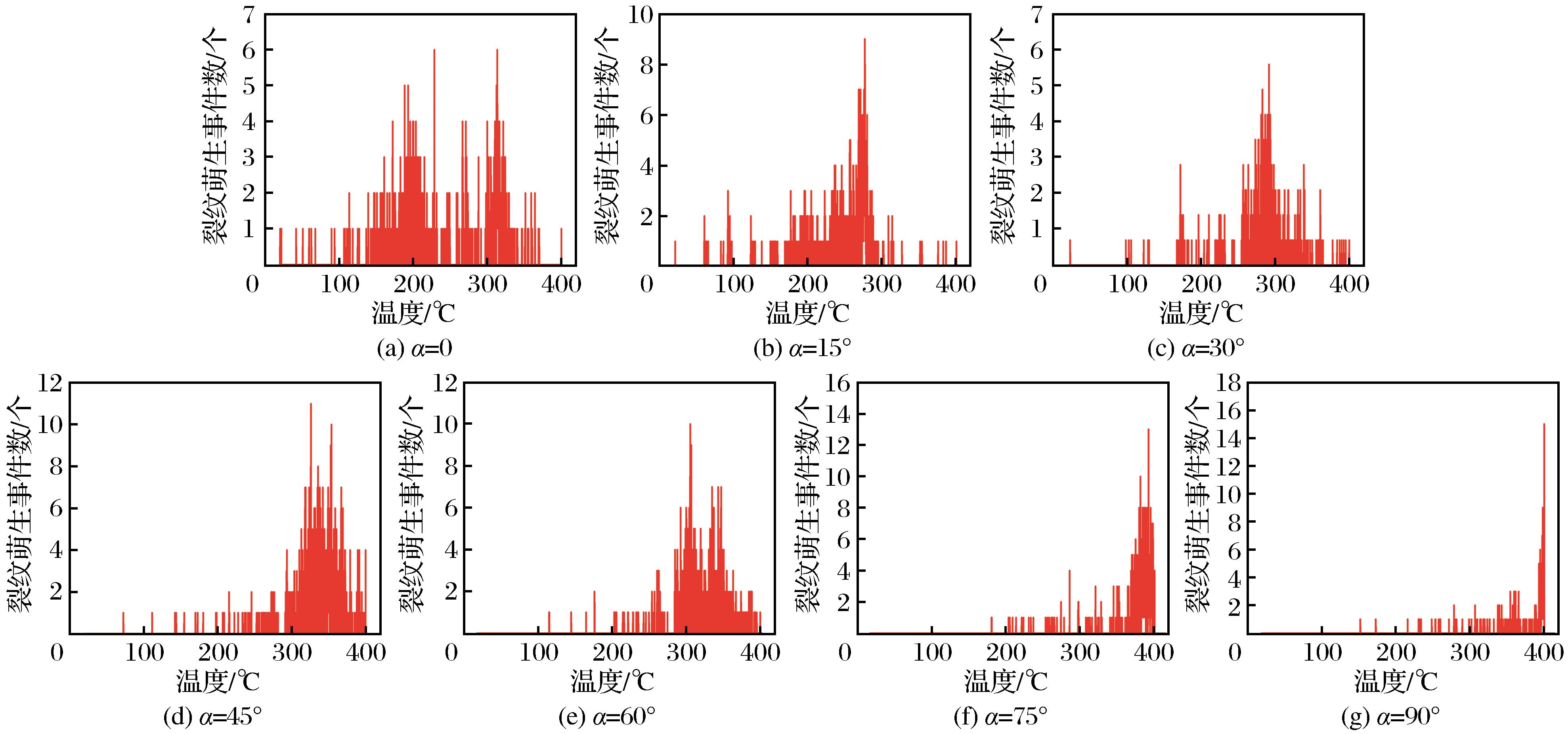 | 图13 模型的裂纹萌生事件数—温度关系图 |