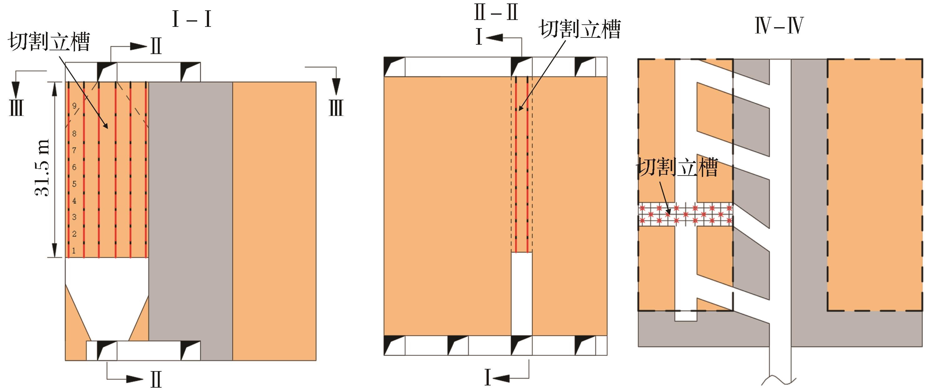 | 图1 阶段空场嗣后充填采矿方法切割立槽三视图 |