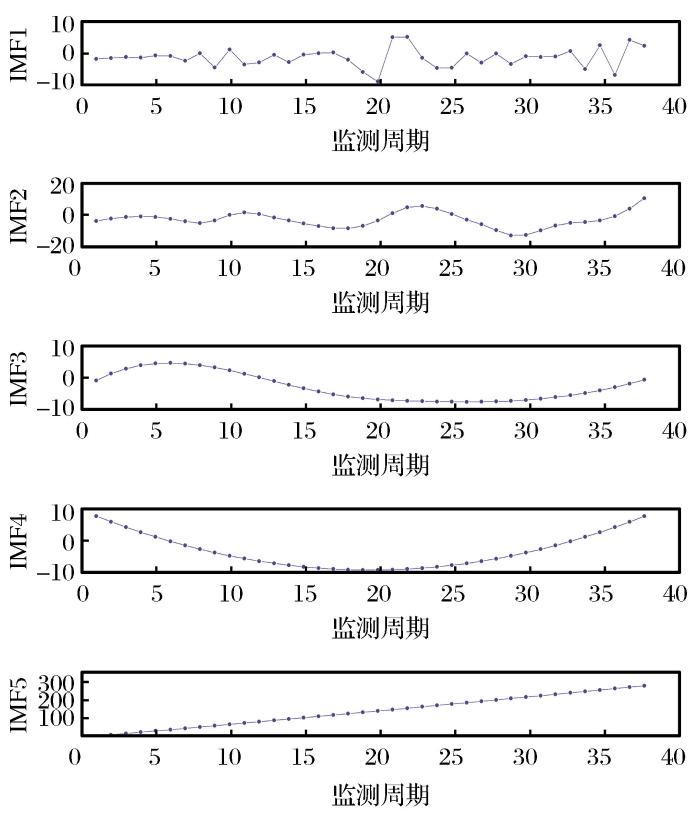 相关研究表明,组合模型比单一预测模型具有更高的预测精度和稳定性(李润求等,2014;李骅锦等,2016)。经验模态分解(EMD)降噪方法,通过数据序列自身的特征时间尺度进行数据平稳化,无需预先设定基函数,挖掘数据的不同频率特征,能够有效提高预测精度(时培明等,2013)。然而,EMD在处理时间尺度变化较大的数据时容易陷入模态混叠(Huang et al.,1998),集成经验模态分解法(EEMD)在经验模态分解法(EMD)基础上加入白噪声取平均,能够有效抑制模态混叠现象效应(Duan et al.,2016)。集成经验模态分解法已被广泛应用于分析由多分量构成的时间序列,能够较好地分析数据样本从而达到分解目的(Yang et al.,2011)。针对边坡位移时间序列,将监测数据分解后,分别进行子序列的影响因素分析,并建立预测模型进行分项预测,将各分项预测结果等权叠加后作为最终预测值,能够有效提高预测精度(彭令等,2013;张凯翔等,2017)。