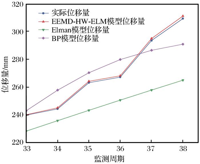 In order to accurately predict the displacement of waste dump slope with small samples and nonlinear characteristics,an EEMD-HW-PSO-ELM slope displacement combined prediction model based on empirical mode decomposition method,cubic exponential smoothing method and particle swarm optimization limit learning machine was proposed.Taking the GPS displacement monitoring data of Yiminhe open pit waste dump as an example to verify the effectiveness of the model,the research results show that the time series of slope displacement decomposed by EEMD model includes four IMF components and one margin.The decomposed data is reconstructed into trend term and fluctuation term with clear physical meaning.The cubic exponential smoothing method and particle swarm optimization limit learning machine were selected to predict the displacement of trend term and fluctuation term respectively.The equal weight superposition value is the final prediction result.The average relative error of the prediction value is 0.38% and the root mean square error is 1.15.BP model and Elman model were selected for comparative prediction.The results show that the com-bined prediction model has good prediction effect and can provide a theoretical basis for safety management.