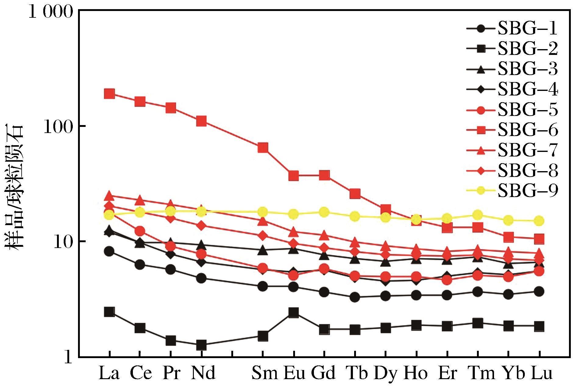 | 图8 稀土元素球粒陨石标准化分布模式图 |