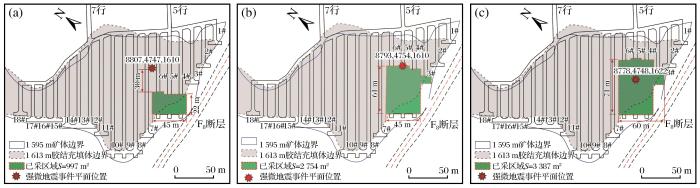 When the mining method in the West No.2 mining area of Longshou mine was changed from down layered cemented filling mining method to sublevel caving mining method,it is necessary to form a loose overburden by caving or blasting the large area cemented filling.Using the traditional drilling and blasting method to form the loose overburden has a series of disadvantages,such as long period,large input and less output,which can not meet the production needs of the mine.A induced caving technical scheme of forming loose overburden by reserving ore bulk as safety cushion and uniformly expanding goaf was proposed,which combined the formation of overburden with the dual demand of stope productivity.Microseismic monitoring technology was used to monitor the caving process of cemented backfill.The monitoring results show that the caving mechanism of cemented backfill in West No.2 mining area can be divided into three types.The first type is the failure event of cemented backfill caused by the mining stress concentration within 20~45 m behind the goaf,which mainly occurs in the early to middle stage of drifts mining.The second type is that with the expansion of the goaf,the shear stress at the fulcrum of the suspended cemented backfill beam is also increasing,when the shear stress exceeds the shear strength of the cemented backfill,the beam will shear failure at the fulcrum at the rear edge of the goaf,this kind of failure event mainly occurs in the middle to end stage of drifts mining.The third is that when the exposed length of the cemented backfill beam increases to a certain extent,the cemented backfill beam bends and sinks under the ground pressure and its own gravity,resulting in tensile stress in the middle of the rock beam of the filling body,resulting in bending and tensile failure in the middle of the cemented backfill beam,this kind of failure event mainly occurs in the middle to end stage of drifts mining.Based on the comprehensive analysis of the results of microseismic monitoring,theoretical calculation and in-site ore drawing tracking,it can be seen that during 1 595 m sublevel mining,the caving of cemented backfill mainly occurs at the level of 1 610~1 630 m.Therefore,a loose overburden composed of residual ore and caving cemented backfill with a total thickness of about 30 m is formed on the floor of the first mining sublevel.This loose overburden thickness meets the safety requirements of mining and the requirements of relevant safety regulations,which shows that the preset goal of forming loose overburden safely,efficiently and at low cost has been successfully achieved by using induced caving technology in the West No.2 mining area.