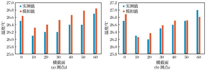 Comparison diagram of measured temperature and simulated temperature(points d and e)