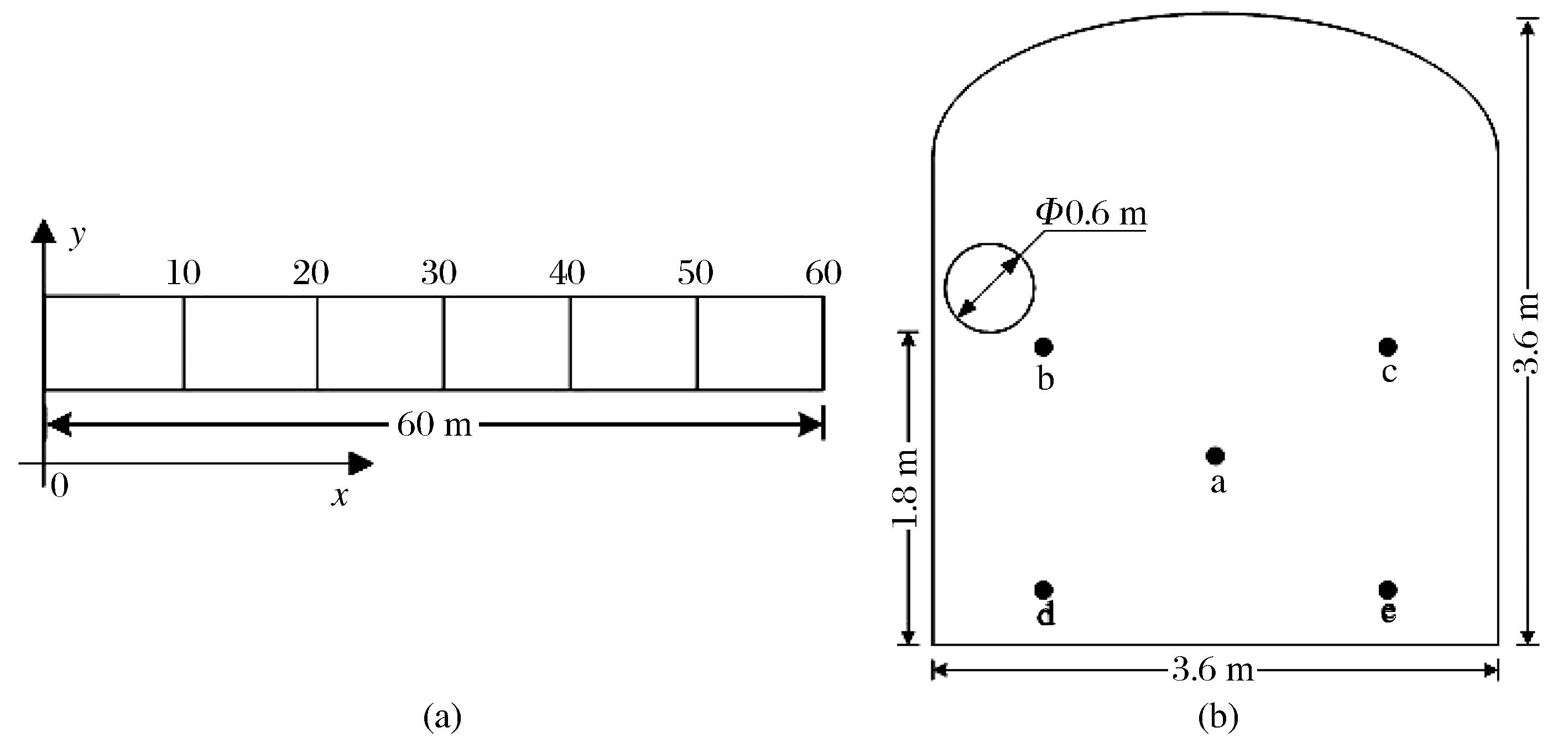 | Fig.1 Schematic diagram of roadway section (a) and temperature survey point layout (b) |