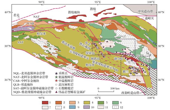 ... 1.太古宙—古元古代变质基地;2.中新元古代深变质岩石;3.新元古代(?)变质岩;4.新生代沉积岩;5.早古生代俯冲增生杂岩;6.早古生代沉积建造;7.晚古生代—中生代沉积建造;8.断层;9.HP/LT变质岩;10.超高压变质岩;11.花岗岩;12研究区Regional geological map of the northern Qaidam Basin(modified after Yu,2021)Fig.11.2 地层