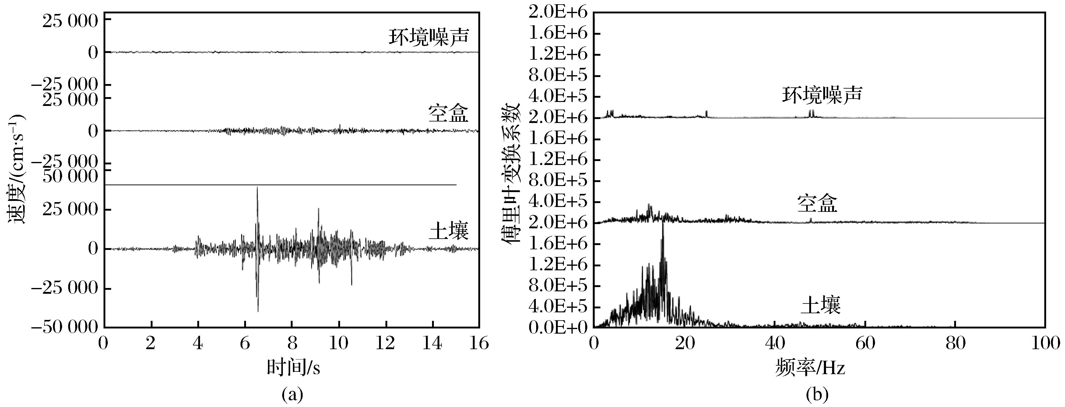 | 图7 对照试验微震信号时域波形及频率分布图 |