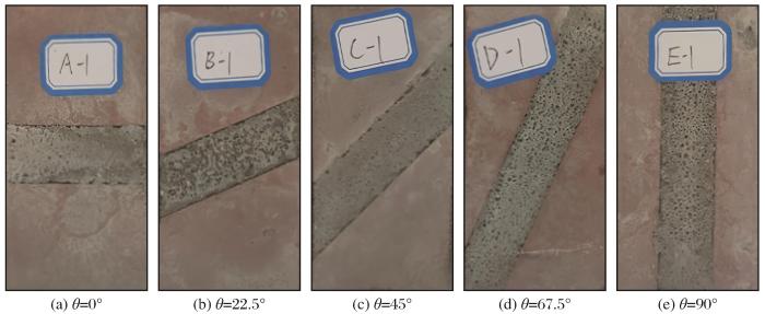 Failure results and failure mode classification of samples with different inclination angles in the experiment