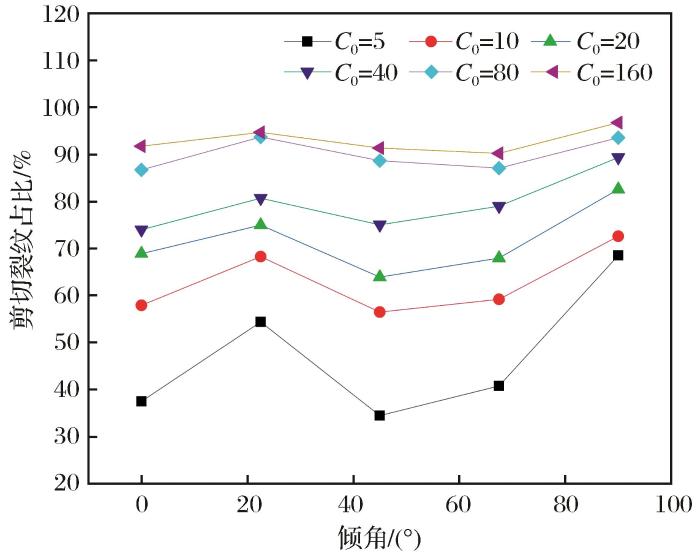 不同C0值对应剪切裂纹占比随倾角的变化趋势