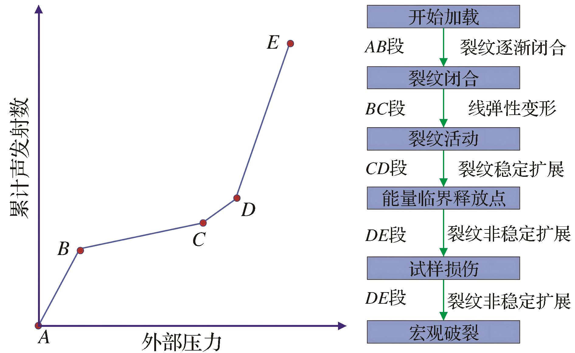 | 图6 岩石加载过程累计声发射数曲线图 |