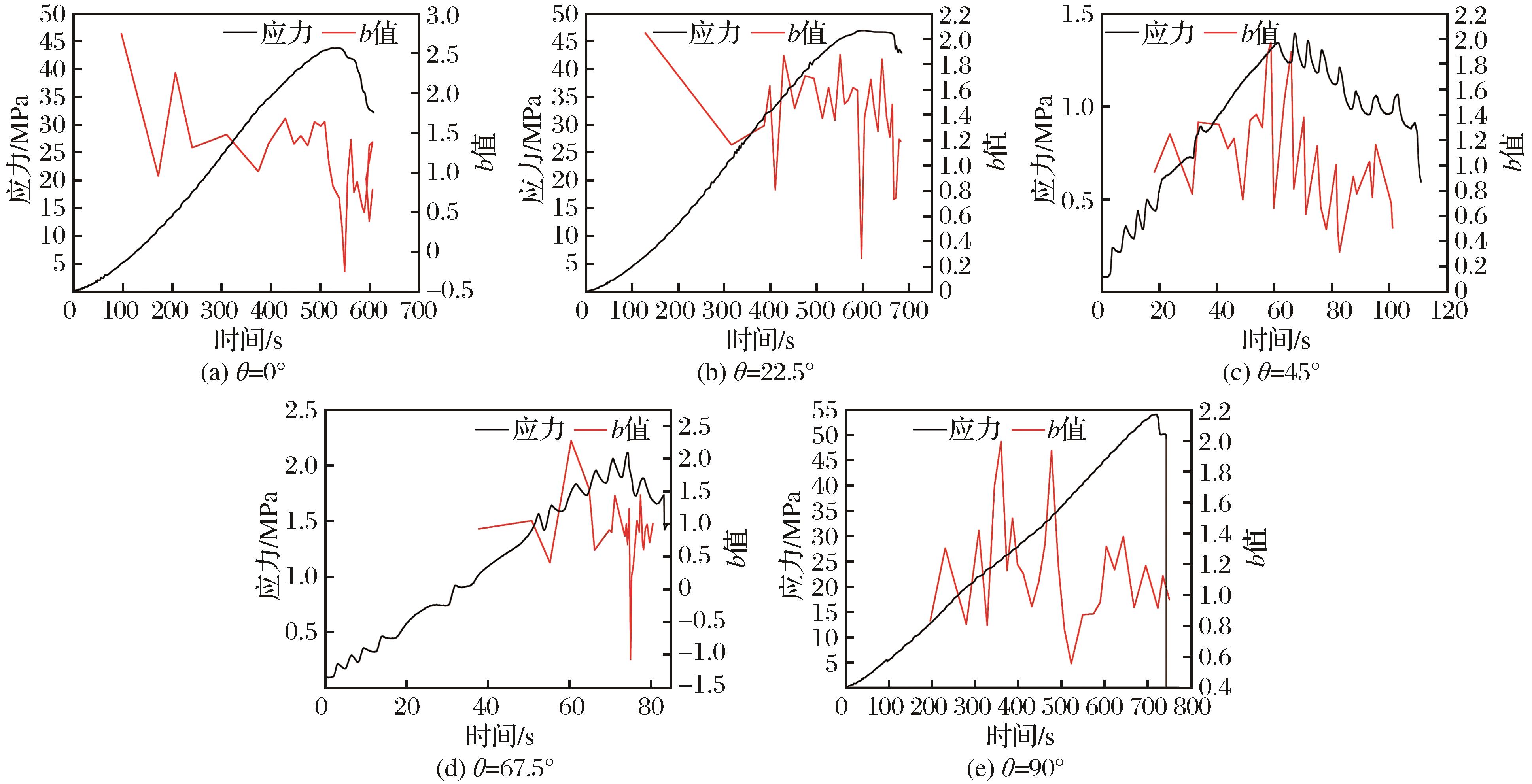 | 图8 不同软层倾角下的b值—应力曲线 |