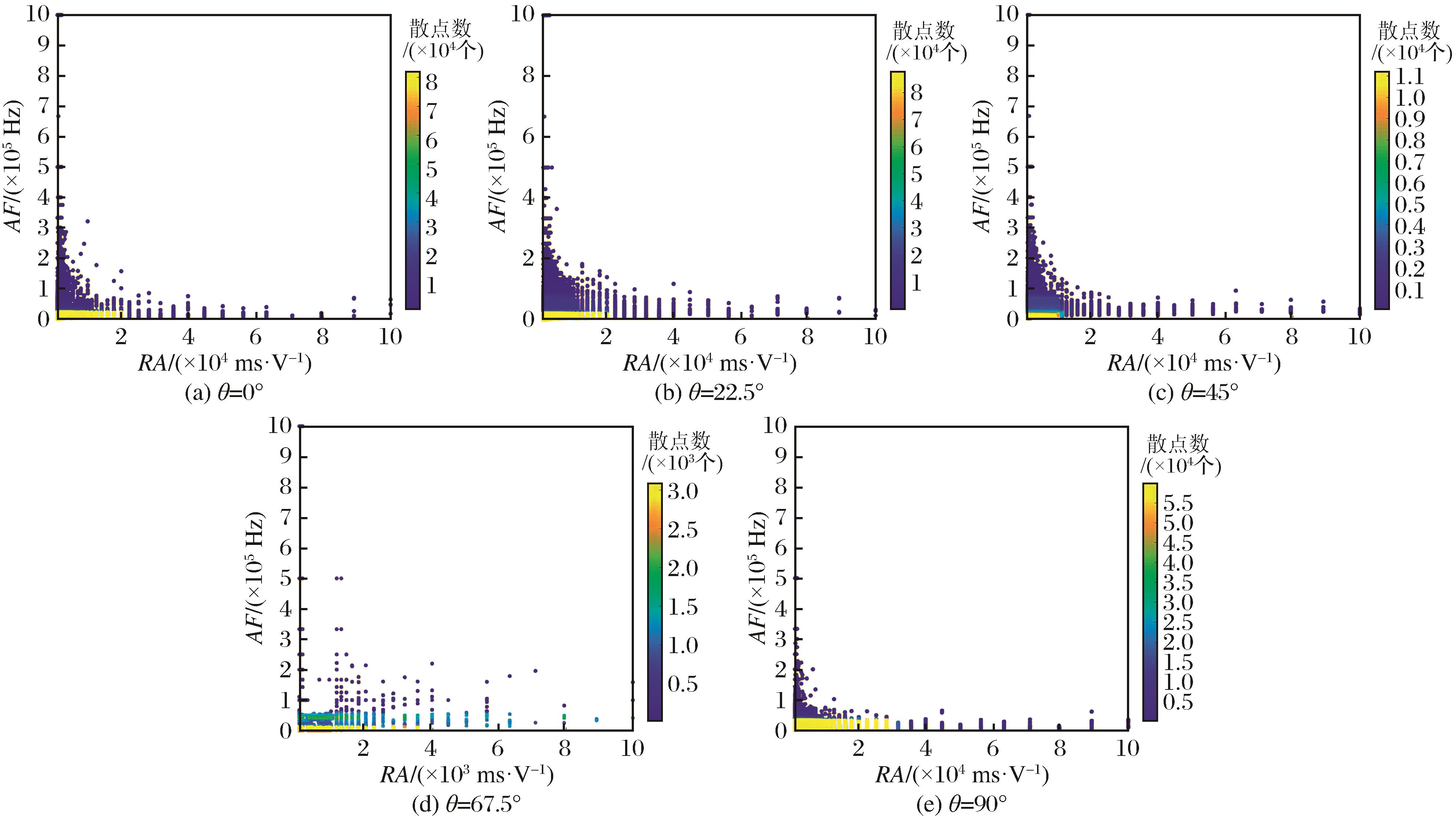 | 图11 不同倾角下AF-RA值密度分布 |