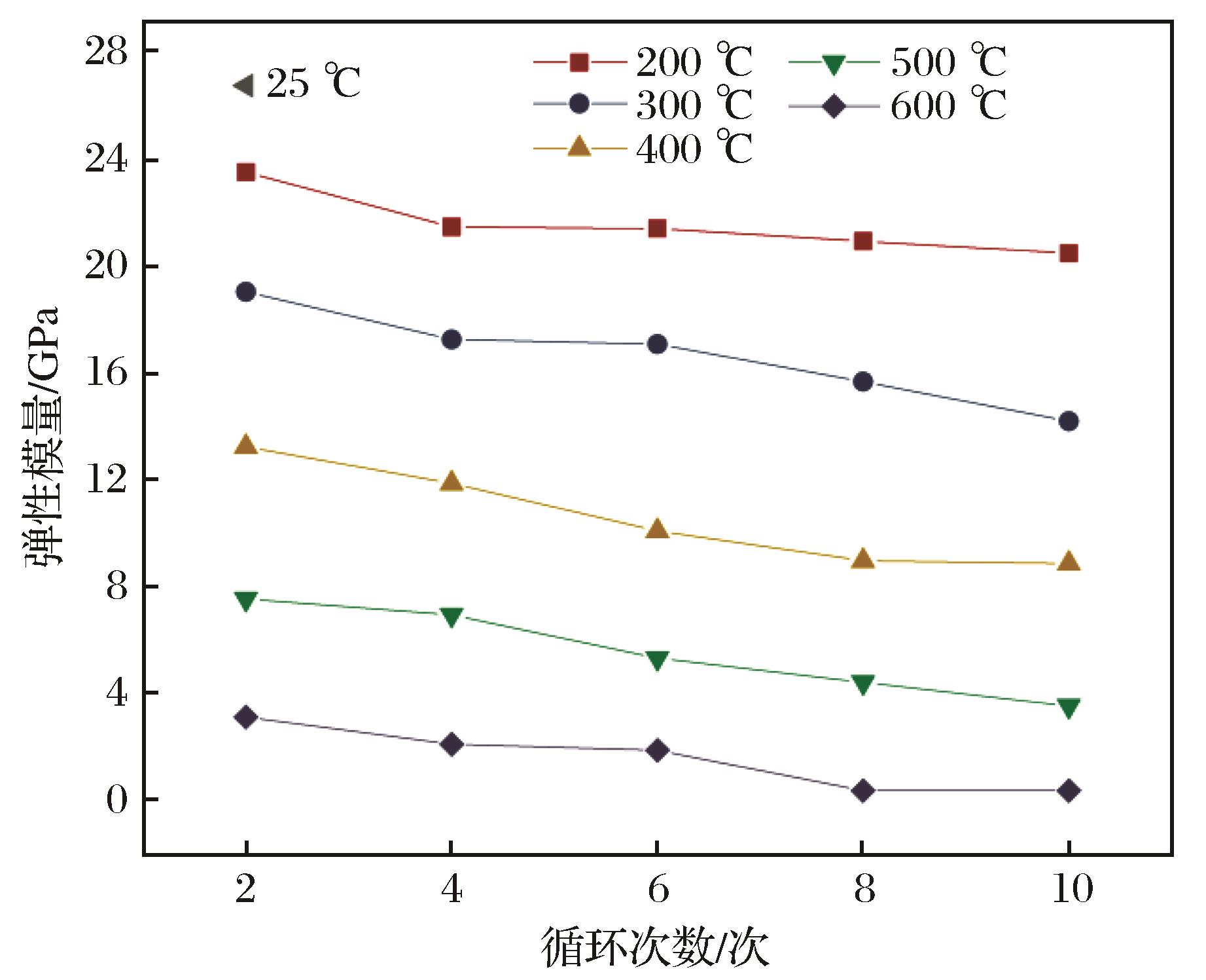 | Fig.8 Change of elastic modulus of granite specimens under different temperature and cycles times conditions |