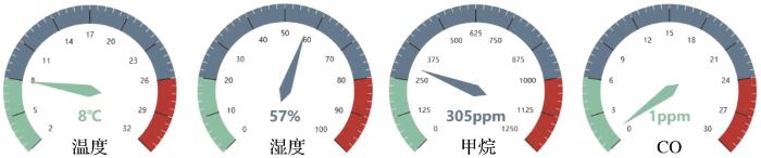 (3)传感器模块:传感器模块由多个传感器组成,用于实时采集井下环境信息,本次设计中使用了甲烷传感器、温湿度传感器、一氧化碳传感器和氡及其子体监测模块。