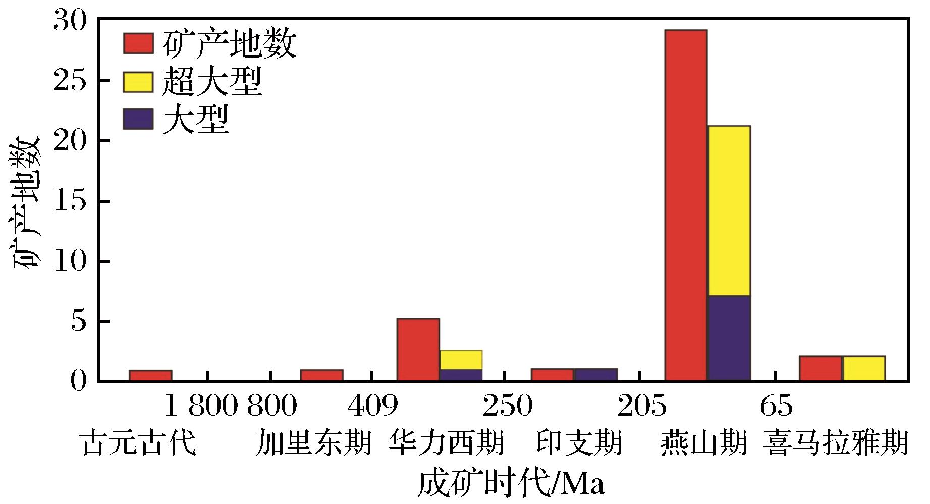 | 图1 我国花岗岩型铷矿成矿时期分布直方图(数据引自 |