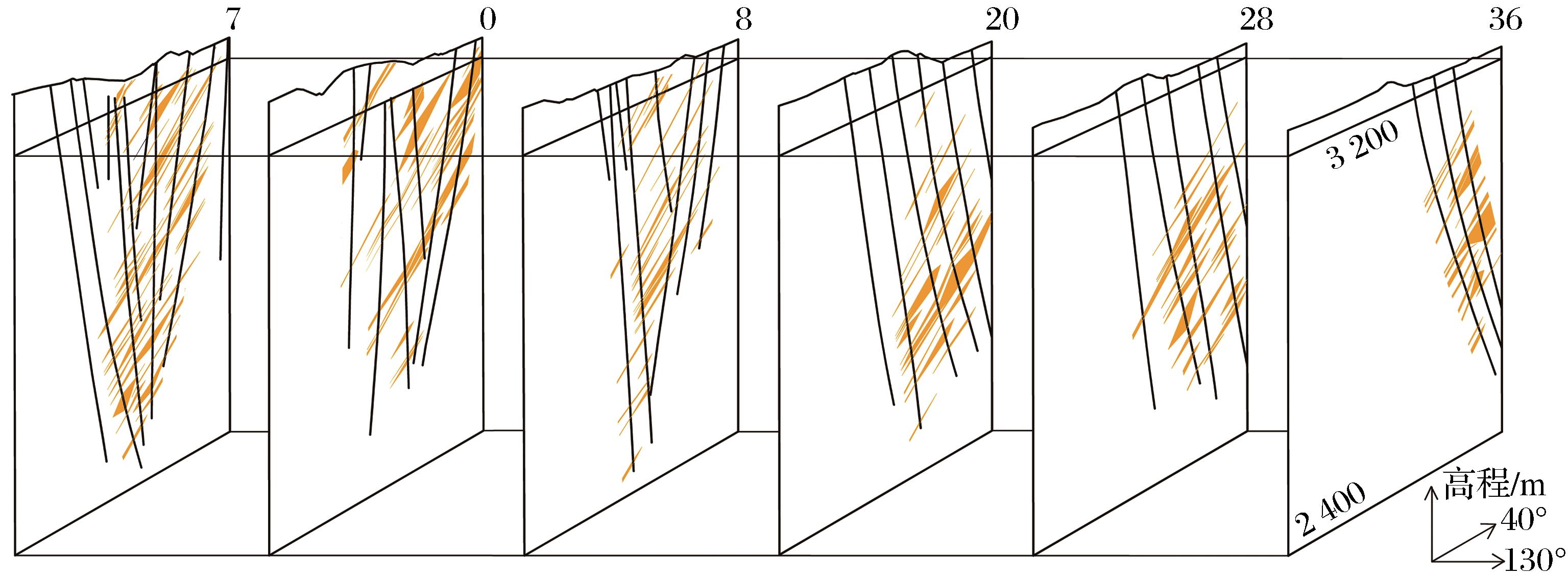 | 图4 加甘滩金矿7~36勘探线矿体分布联合剖面示意图 |