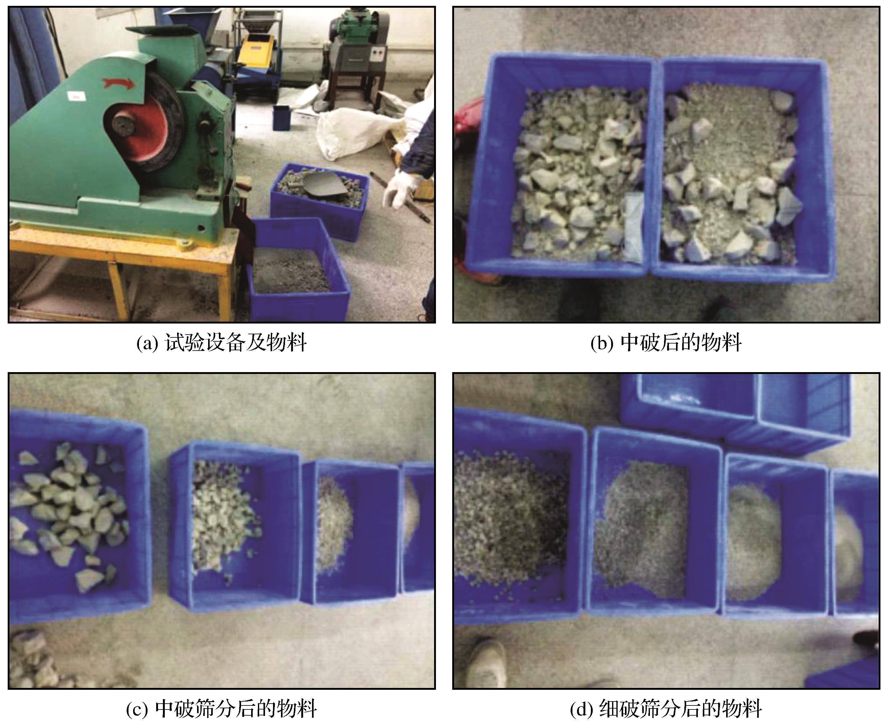 | Fig.7 Simulation experiment process of secondary crushing of caving cemented backfill |