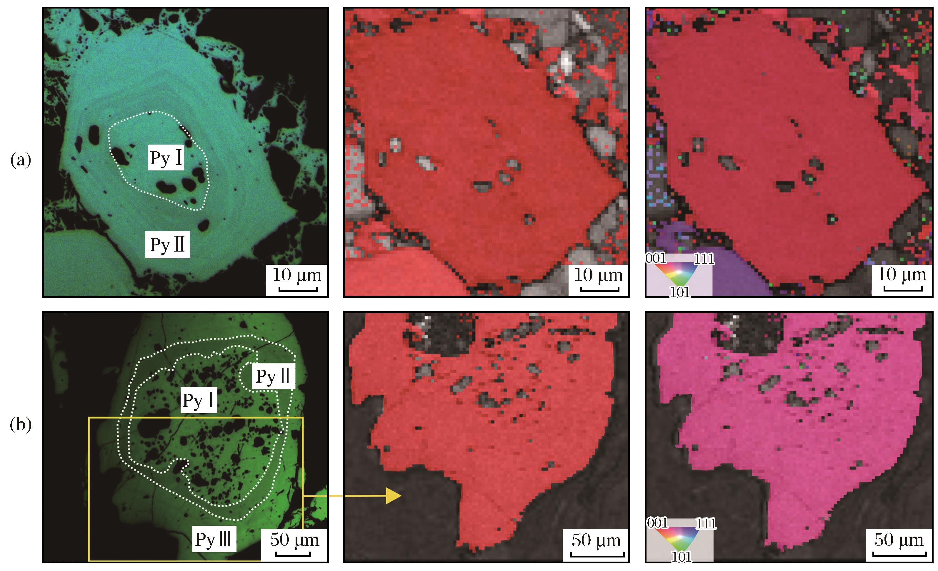 | Fig.9 EBSD phase(a) and inverse pole maps(b) of pyrite in the Tuolugou deposit |