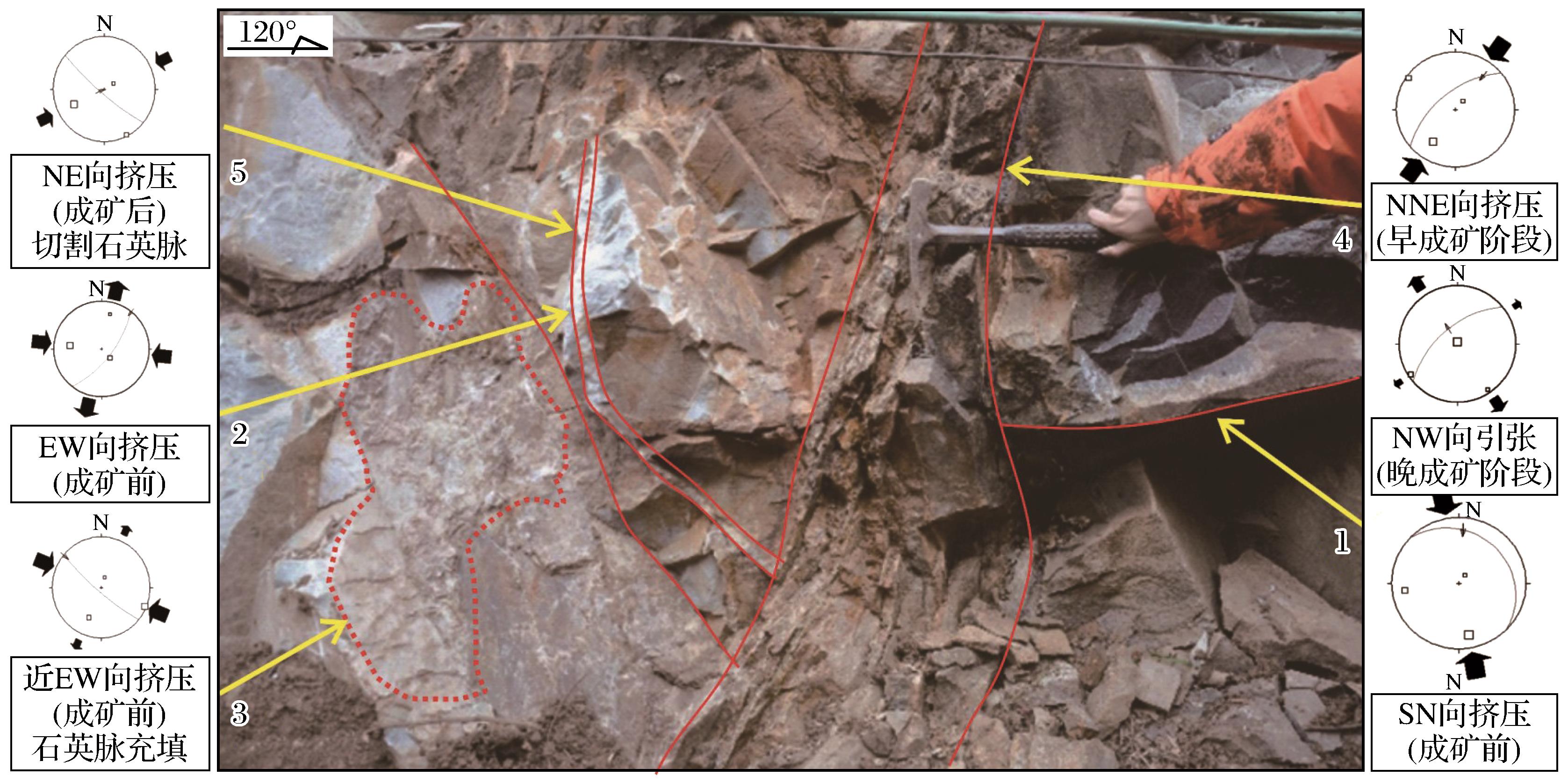 | Fig.8 Cutting relationships among multi-phase faults and ore-bearing vein |