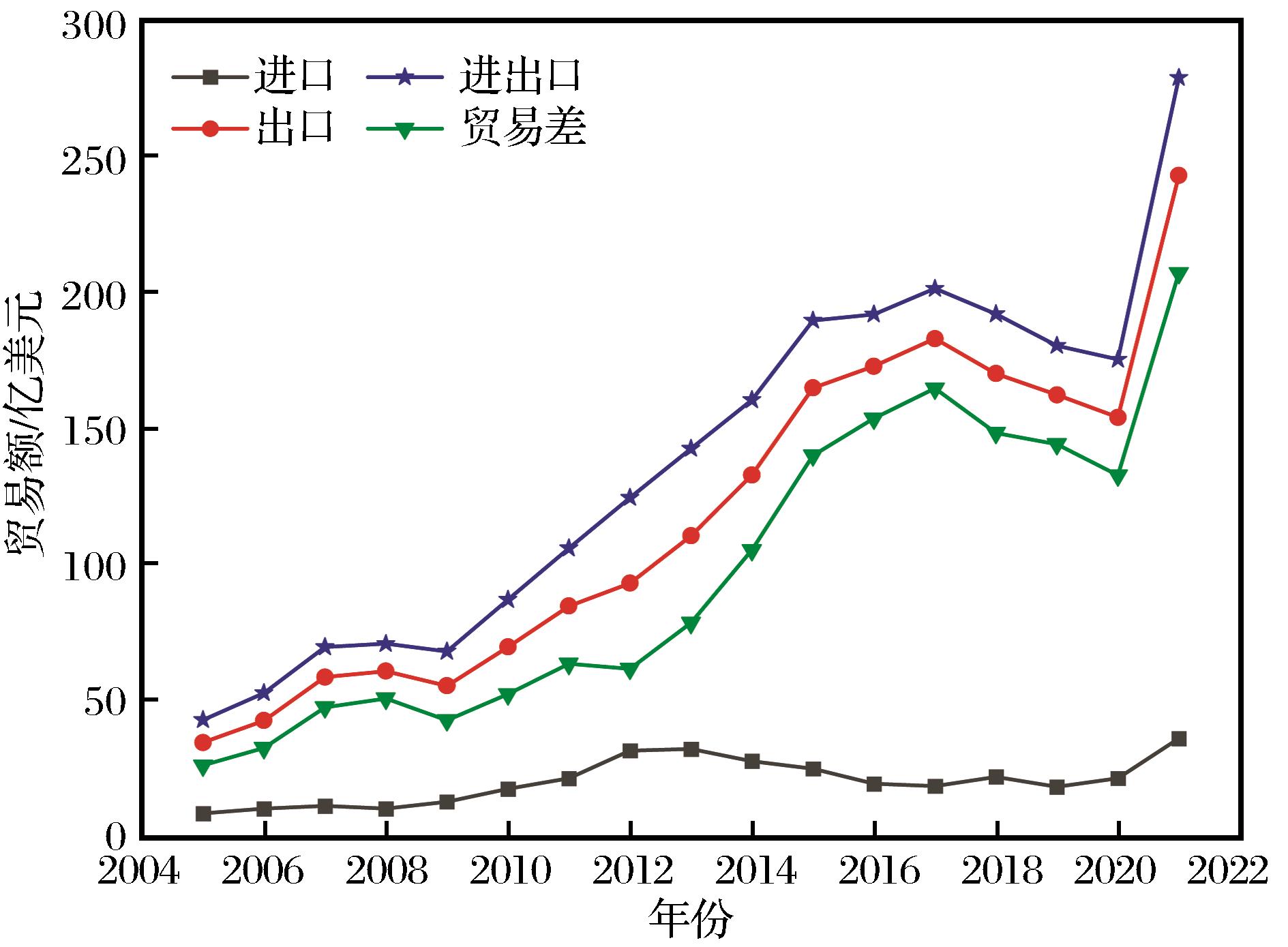 | Fig.1 Changes in bilateral trade between China and Pakistan from 2005 to 2021 |