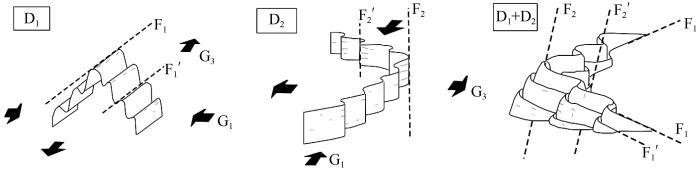 根据盖塔绿岩带的构造形态,将其构造演化划分为6个期次:(1)沉积—变质阶段,发育顺层剪切带;(2)发育直立水平褶皱,轴面近直立,枢纽接近于水平;(3)发育大型倾竖褶皱,轴面和枢纽均近直立;(4)2期褶皱叠加形成复杂的褶皱样式;(5)发育韧—脆性剪切带,剪切带走向为NW-SE向,应为成矿期主要构造活动;(6)后期发育多期次断层活动,走滑特征较为明显。